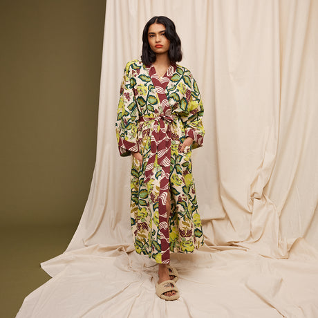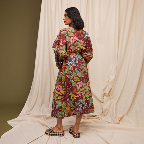 Brigitte Cotton Bath Robe - Scarlet