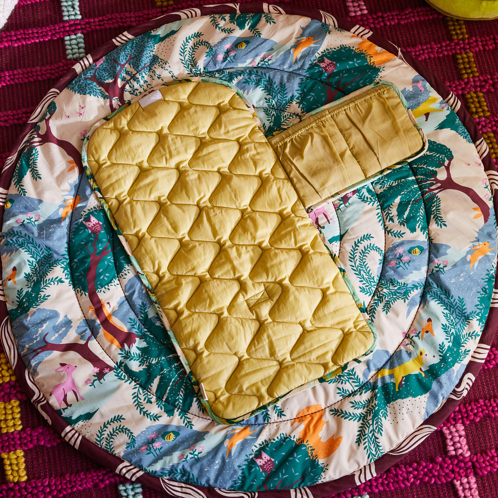 Designed for changes on the go, our beautiful change mats are made from ultra-soft, padded double cotton. Fold it up and tote it in your baby bag as you spend the day together.