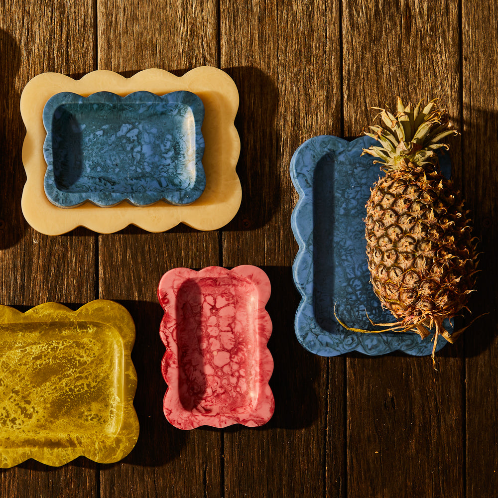 Note, all resin colours are mixed and poured by hand. As a result, each piece is one of a kind and will include inevitable variations in its colour, swirl pattern and opacity. This is part of its beauty and is not a fault of the product. Our imagery endeavours to give you as accurate a representation of the product you’ll receive as possible, but please be aware that no two pieces are exactly the same.