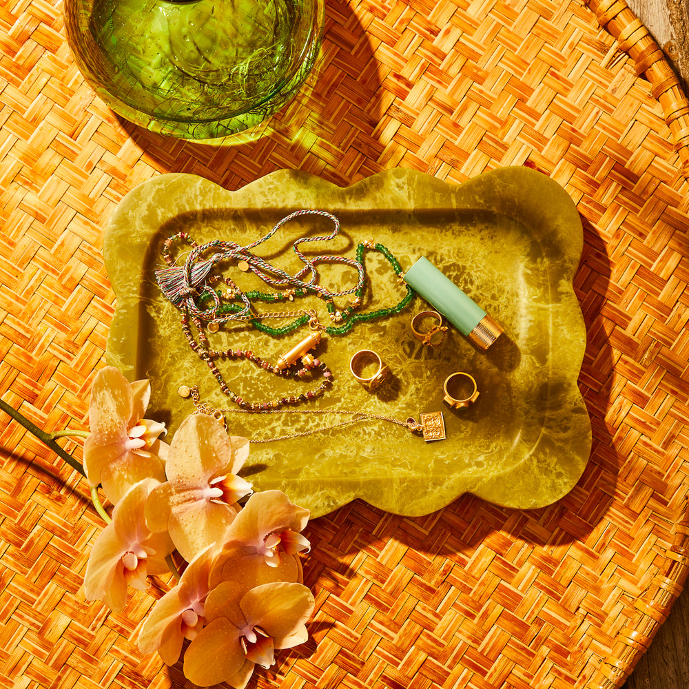 Curved edges and mid-century soul meet everyday living in this elevated resin tray. From bathroom vanity to coffee table, it's crafted to hold everything from fragrances to artful collections.