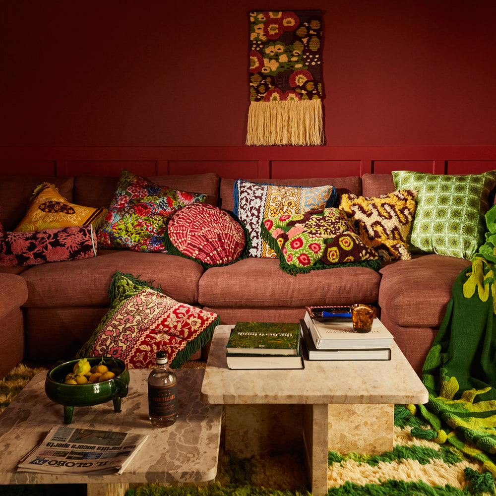 Our beautiful cushions showcase a wide range of stunning techniques including embroidery, tufting, chain-stitching, punch-needling and many more!
